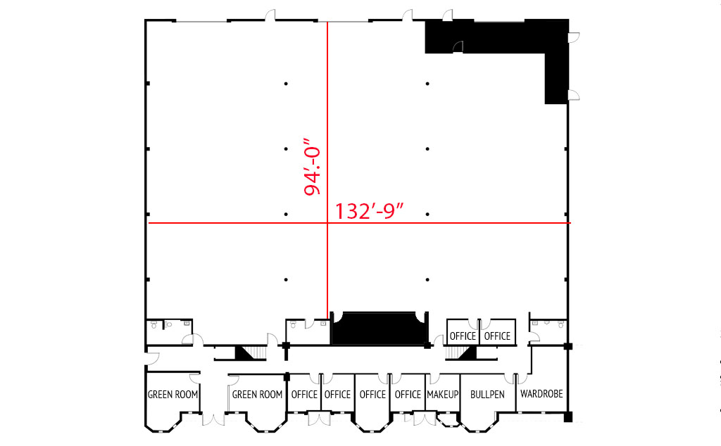 From ample power distribution and internet connectivity to professional support spaces, AKS Stages delivers the infrastructure production teams depend on. High ceiling grid systems and clear spans support technical setups required for lighting, sound, and cameras, while office and green room spaces ensure operational efficiency and crew comfort.