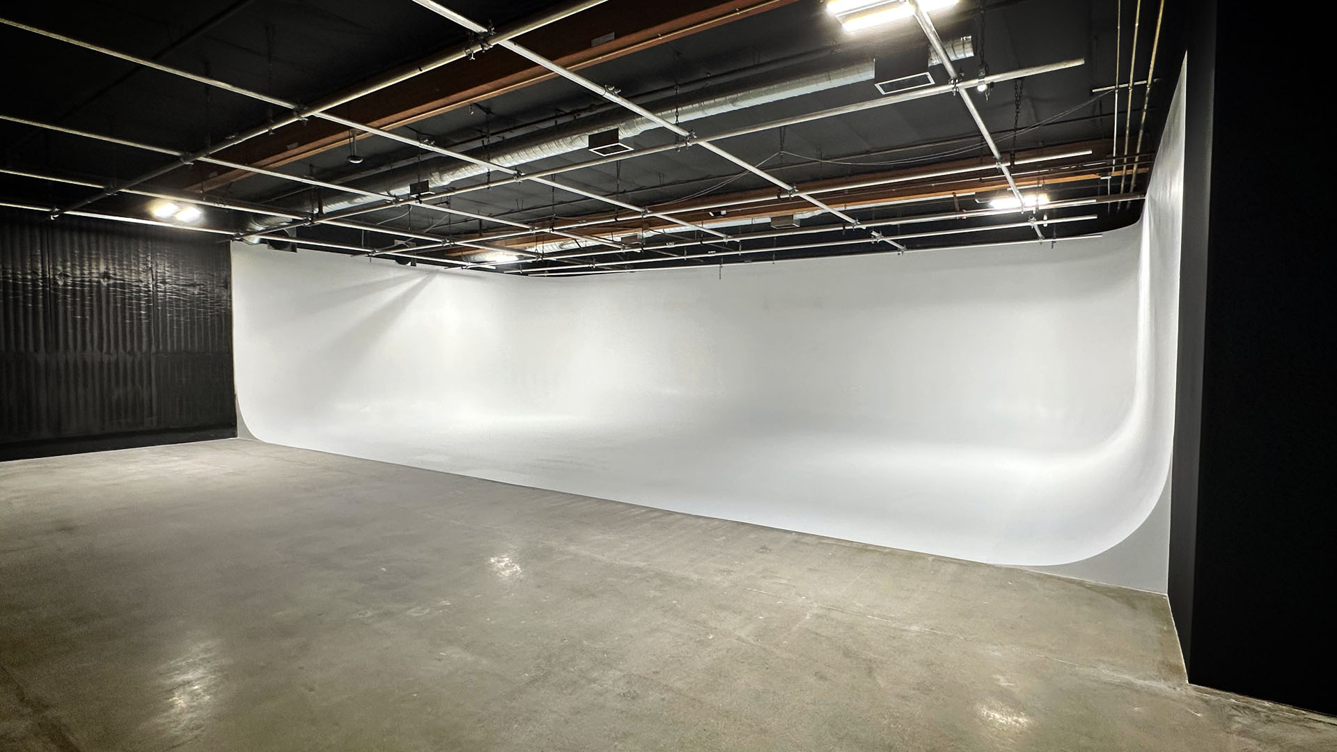 Our three-wall cyclorama is now available in Stage 3! Spanning over 40 feet wide with 11 feet to the grid, it’s designed for easy lighting—no need to overpack your gear.